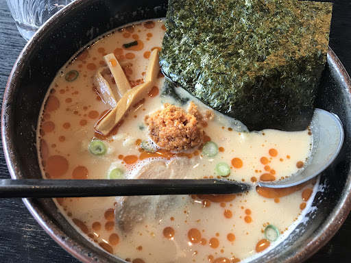 Read more特濃ごま担々麺790円をいただきました。とろっとした濃厚なスープが、ちぢれ麺によく絡んでとても美味しいです。テーブルに置いてある旨辛もやしをたっぷりのせ、スープに馴染ませて麺と一緒に食べても、またシャキシャキ美味しい。とろっとろチャーシュー(とても好み)、しっかりした海苔、ねぎ、ピーナッツ?ごま?のペーストみたいなのがのってました。お腹に余裕あったら残ったスープにご飯を入れたいですね。 席は、テーブルと、小上がり。お手洗い(和式)、ティッシュ、子供用椅子あり。 お会計時に麺類100円引き券と、餃子無料券をいただきました。割引券がなくても、また伺いたいです。