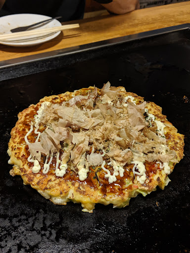 I don't doubt the quality of the food (to be honest it depends largely on your own cooking skills) or the popularity with locals, but some of the practices were unexpected. There's nothing wrong with a one drink + one item per person system, but when you add on an extra starter and charge for that as well, it really gets a bit too much. Additionally, the restaurant does not separate smoking and non-smoking areas, and there were multiple tables smoking when we went there. Also, it was our first time doing okonomiyaki there, the staff just left the items on our table. We did try following the instruction sheet given to us (I presume we failed because it turned out a bit weird; this is on us) but it would have been a lot better if he would have just checked on us halfway through or corrected us he saw us making any major mistakes. I understand they were probably busy, but only a maximum of 4 tables were occupied at any one time while were there and I doubt this is as crowded as their peak hour. If you want a local okonomiyaki experience, this is probably a good place for you, but avoid if you're not experienced and are not...
