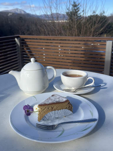 野鳥たちの声を聴き、泉ヶ丘を眺めながら、初冬の澄んだ空気と一緒に食べるキャラメルクリームチーズケーキは、非常に贅沢なお味でした。口当たりが滑らかで濃厚です。一口目で頬が蕩け落ちてしまいます。