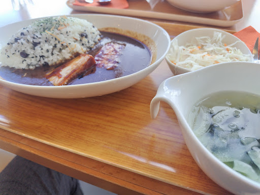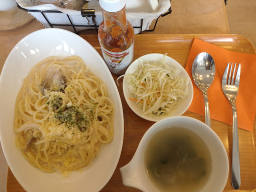 ヘアサロンとホンダディーラーとカフェが同じ建物で営業する事によって提供する新しい形の便利なサービスとの事・・・・・ちょっと何を言っているのか分からないけれど・・・・関連性が無さ過ぎる異業種過ぎて珈琲飲みに行くついでに新車を見に行こう!!とか、車を探してるけども隣にヘアサロンが有って便利だから彼処の車屋サンをで車を探そう!!とはならない・・・・よねぇ。 ついでに珈琲を飲んで帰ろう!!とはなるかな。 そんなこんなで複合施設では有るので兎に角駐車場は余裕で止められる広さになります。 店の外観は御洒落と言うよりかは個性の感じられない、良く言えばシンプルで清潔感の感じられる見た目。 店内に入ると天井が高く広い窓から射す日差しで店内も明るく外から見た外観の印象とは、かけ離れて、とても現代的で御洒落な雰囲気の中で食事を楽しめます。 ただ2名掛けのテーブルは限界まで狭く運ばれて来る品を並べるとビッシリ隙間が無くなります。 今回はお昼時だったのでランチメニューから俺がカレーのランチと嫁さんがパスタのランチを注文させてもらいました。 驚くのは値段の安さで700円でお釣りが来る価格の設定です。 注文から運ばれて来る時間も相当に早めです。 値段の割にはシッカリとした味に感じました。 ボリューム的には腹八分目だと感じましたが女性の感覚からしたら、どうなんでしょう?丁度良いと感じるのな? 個人的にはユックリとした時間を過ごす店としては悪く無いとは思うのですが、いかんせんテーブルが狭く、せめて食事が済んだら店員サンには気を利かせてもらって言わなくても下げて貰いたいかな~とは思いました。 本日の嫁さんの迷言 『美味しく無い訳じゃ無いけ〜・・・・あの味は出来上がってる味だったよねぇ』 ぇ?お前は何を言いたいんだ?・・・・あぁ~なるほどね~ソレで出てくるのが早いのか? あくまでも自分達が食べて...