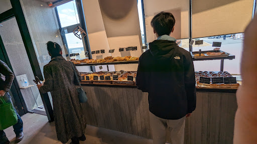 Read moreパンは美味しくいただきました。 レジ待ちの際、私だけが待ちで他にいない中、あとから来たおばさまが横から無言で並ぶ。 何か、レジの方に急用なのかと思いきや、順番が来た途端並ぶのこっちからだからと割り込み。 特に並びの案内表示はレジ近辺の周りにも足元にもなし。見逃してたらすみませんが、少なくとも気づくとこには無いです。(レビュー時点) レジ2台に合わせて4人スタッフいるも案内もなし。 スタッフさんさすがにこちらが並んでたの分かっていたと思いますが、そちらから並んでくださいと、おばさまの後ろに回される。おばさまもこっちからだと言って貰えればそれでも良かったのですが、、、。 ちなみに並ぶように誘導されたのは、店外廊下側に連なるように。行列ができて施設の廊下に並ぶ可能性があるならなおさら表示をした方が良いのでは。 まぁ、この程度大して時間も変わらないかと、そのまま待つも、順番が来ると割と雑にトングを取られる、目も合いませんでした。 オープンしたてならともかく、ちょっと残念。 評価が高い割にと思ってしまったのは、私の運が悪かったのか。 冒頭にも書きましたが、...