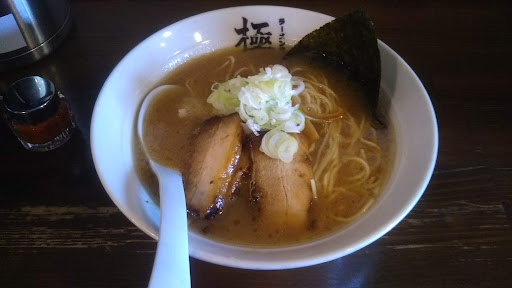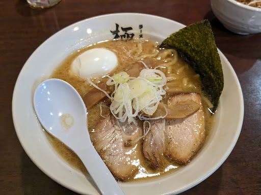極ラーメンと餃子とご飯を頼みました ラーメンのスープは豚骨スープで 濃厚ではありましたが、スープの上に浮いた脂が多く感じました。 美味しのですが少し多いかなと。 チャーシューは味がしっかりついていましたが 私にはしょっぱく感じ(醤油がキツすぎる)、 ご飯がないとちょっと厳しいかなと… 麺は太麺か細麺か選べたので太麺を選びました、 モチモチしていてスープと合っていたのと思うのでよかったです! 餃子とご飯がついても+150円でお得だと思います(ランチタイム) 餃子はどこにでもある餃子という印象。 ご飯は普通が大盛り位あるので ビックリしました。 量の割に金額が安いと思います! 評価...