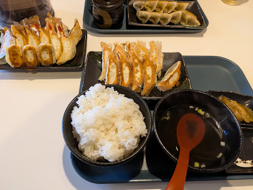 Read more頂いたのは餃子ランチ。550円。 5個セットの餃子が2列。10個あります。 あとはご飯とスープ。 スープもちまっとしたものじゃなくで、ご飯の器と同じサイズのしっかりしたもの。 出てくる時間が少しかかったので、店主一人だからかな、と思ったら餃子は注文受けてから皮に包んでました。 たれは珍しい味噌だれ。それに醤油、お酢、ラー油などを混ぜる、と説明書きにありました。 味噌だれと醤油だけでも十分美味しい。 たれが少なくなってきたらお酢を足したりして、味の変化も楽しめます。 餃子はあんが少なめで、皮もふわったまつした包み方。たれに絶妙に絡みます。 お腹もお財布も満足。 餃子館ですが、もちろん麺類もあります。 道路沿いで車だ...
