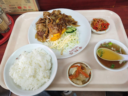 中華飯店に、多彩なメニュー。その中、最近、肉料理食べてなかったので焼肉定食を頂きました。しっかりとした味付に、白米が食欲そそり、美味しく頂けました。焼肉以外にも小皿メニューあったのは、嬉しかったです。他のお客さんの五目焼きそば美味しいでしたし、常連さんでしょうか? ご年配の方でですがお一人でビールと一品、ライス半分等にしてランチ楽しんでおられました。地元の方から昔から愛され利用されているお店なんだと感じました。