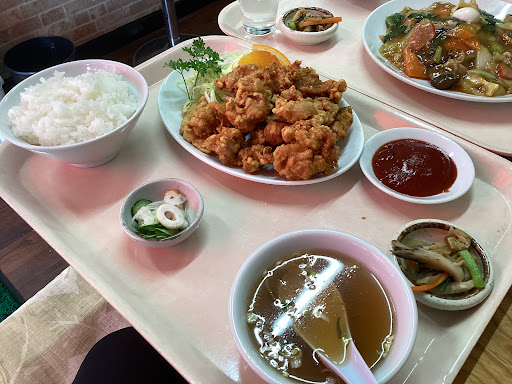 Read more2025年06月05日にランチで12:00くらいに訪問しました。 通りがかりです。 長く地元に根付いた町中華のお店のようです。 3人連れでしたので小上がりに着席しました。令和の今では、小上がりのサイズはなかなか狭めでした。 「から揚定食」を注文しました。他の2人は「五目焼そば」と「五目揚焼そば」の注文でした。 10分強くらいで配膳されました。 から揚は、やや薄切りながら10個。揚げたてあつあつです。とき衣系(たぶん)でかりかりです。別添えのトマトケチャップは、珍しいですね。 ご飯は、やややわらかめ。 スープは、そのお店の味付けで、よいですね。 五目焼そばも五目揚焼そばも、おいしそうでした。 出前もやっているようで、頻繁に出発してました。 paypay使えました。 おいしくいただきました...