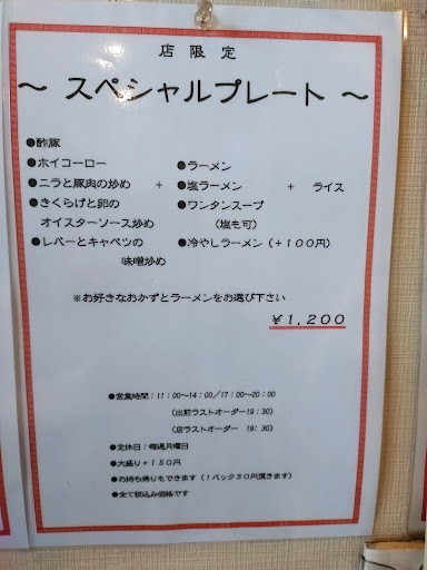 ランチで訪問です。毎回チャレンジしては満車でしたが今回は駐車場空いており初訪問!ラーメンをオーダーするつもりが卵キクラゲ炒めがあるとは!迷わずオーダーです。店は満席ですが五分程度で着丼です。まずは一口!美味い😋美味いよーwご飯は多めですが足りないと感じるほど美味い😋絶対来訪しますが次回も卵キクラゲ頼みそーだな!と思い退店です。ご馳走様でした。 2024/7/26来訪です。ラーメンと半チャーハンセットをオーダーです。ラーメンは多少しょっぱいですが良い味出しています。チャーハンもこれぞ中華って感じでパラパラで美味しく頂きました♪次回は何食べよーかなw 2024/9/4再訪問です。またまたたまごキクラゲ定食をオーダーです。丁度昼時で満席でございます。うまさ保書付きで次回はラーメンかな?毎回迷いますwご馳走様でした。 2024/11/28来訪 ランチで中華飯とラーメンセットをオーダーですよ。毎回ラーメンが良い味出すんす👅中華飯初めてでしたが餡が美味い😋王道中華で大満足です。またきます。ご馳走様でした。 2026/6/4訪問です。 ランチの麻婆丼とラーメンセット900円をオーダーです。安定のうまさで大満足です。麻婆丼はちょい辛いかも!ラーメンは相変わらず美...