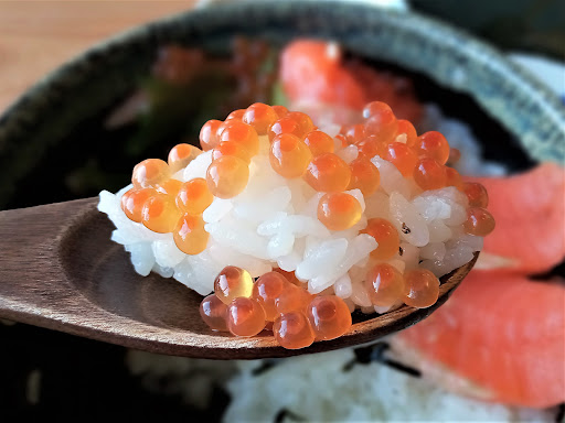 鮪の三種盛りは在るのですが、赤身や中とろ単体の丼や定食が無いんです 妻は脂がのった魚があまり得意じゃないので「まぐろ漬け丼」 自分は仙台の郷土料理「はらこ飯」と迷って、「サーモンといくら丼」をセレクトしました!