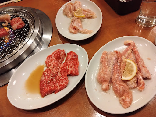 Read more土日祝日はランチ営業しているとの事で日曜の昼前に訪問。 ある意味敷居が高い店のようなので偵察を兼ねて。 ランチメニューは通常メニューの肉+ご飯セットや通常メニューの麺類+サラダセットのような感じです。 肉を最安にしてギリ1000円オーバーくらいなので平日にはちょっと予算オーバーかなと思うので土日祝日限定は正解かと。 私は牛ハラミ、ご飯セット、ご飯大、シークワーサーサワーで2500円オーバーでしたが味はチェーン店とは違い美味しく、つけダレもにんにくが効いて好きな味でした。 個人的にはランチ時はご飯大の追加料金か無く、各テーブルに水のピッチャーがあれば浮いた分以上に肉のランクアップか肉を2種...
