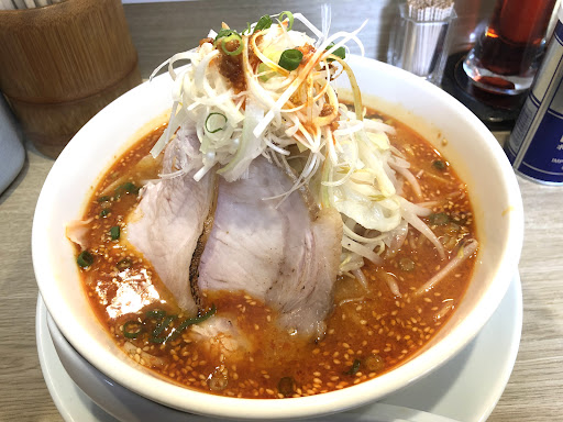A popular ramen restaurant located near Yagiyama Elementary School. Pre-order meal ticket system. There are many local regulars, and customers range from families with children to elderly couples. The spicy miso ramen has a gentle sesame-scented broth, yellow medium-thick frizzy noodles, a large amount of fried bean sprouts, cabbage, white onion, and two pieces of slightly rare and tender special chashu pork toppings....