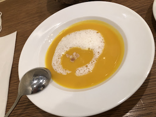 Butternut squash and pumpkin soup was excellent. Sweet creamy and perfect texture. Couldnt get enough :). Cappucino froth was, for me, underwhelming and not necesary.