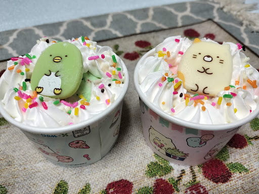 Read more仕事帰りに時々寄って、幸せな気分に。なにかにつけて、アイスケーキ🎂も。店員さんも可愛らしくって、応対も丁寧!今回は、家族で大好きなすみっコぐらしのアイス。カップの周りはシールシートで、外して保存が可能。次回のすみっコも楽しみです☺️ アイスは、ねこちゃんにコットンキャンディパステルを、ペンギン?にはポッピングシャワーをお願いしました。