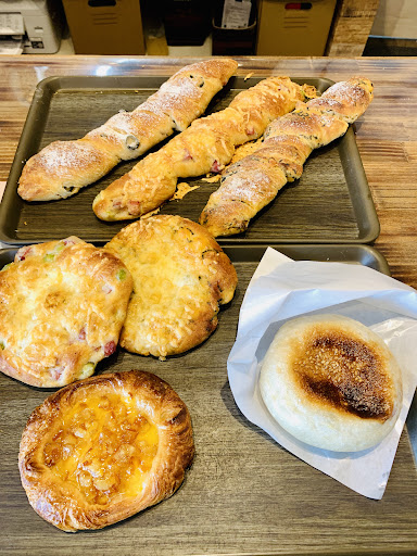 クリームパンがふわふわでとても美味しかったです。 ケースの中からはバトン数種類、ぶたまんパン、ナスとミートの惣菜系パン、平日限定のさつまいものパンなど買いましたが、 私が選ぶものが特にそうなのかわかりませんが、ショーケースの中のパンは油っぽいものが多いのか食べるといつも口の周りと手がギトギトになります。 味は美味しいです、特に豚まんパンはお気に入りです。 でも他のパン屋さんのパンでこんなに手がギトギトになることはないなぁ…と食べながらいつも思います。