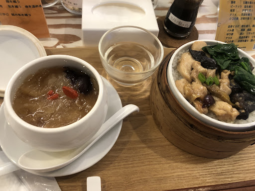 Read more薬膳のスープ3種類から一品と蒸籠ご飯2種類から一品を選んでスープと蒸籠ご飯のセットのランチを食べることができます。病み上がりのため滋養強壮に効き目がありそうな内容のスープと蒸籠ご飯を頼みました。厳密には料理名があるのでしょうが何が目的の料理なのかが書いてあるメニューはとても有難いです。 店内に入って最初にレジに行きそこで注文をしてお金を払う先払い方式です。 スープは醤油がベースの優しい味わいのスープでした。漢方の食材が柔らかく煮込まれていて滋味深いという表現がピッタリでした。蒸籠ご飯は、煮込んだ大根と豚肉、チンゲン菜が具材としてのっていてタレがかかったとても美味しいご飯でした。5人がけのカウンター席と8人が座れるテーブルが一つのあまり広いお店ではないのでグループで訪れるのには 適していないかもしれません。14:00以降は薬膳茶の提供もしているので午後の Tea...