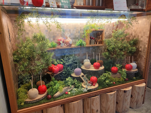オープンしたてで行列でしたが1時間程並びました。 お店はこぢんまりしていて小さめでしたが可愛くて映えますw りんご飴はカットプレーンと丸ごとプレーンとショコラを買いました。カットは30分以内にお召し上がりを勧められたのですぐ食べました! とてもじゃないけど出店のりんご飴とは全く違いりんごそのものがジューシーで甘くてシャキシャキでとっても美味しかったです。りんご飴の飴も透き通った赤でパッリパリで美味でした!! ※りんご飴の飴だけでもべっこ飴として商品化して欲しいくらい美味しかったです。その際は是非買います! 帰宅してから丸ごとの方カットして食べましたがカットが難しく剥がれてしまったりベタベタでしたが味は変わりなく美味しい! ショコラの方はビターで子供達には不人気でしたが大人は美味しく頂きまし...