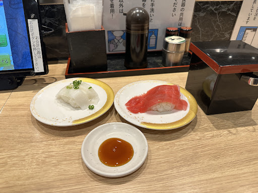 Read more久しぶりにに訪問したらお店が変わっていました。同じ企業グループのブランド違いで以前のお店も新しいお店もそれぞれ有名で函太郎は別県別店舗でも食べたことがありましたががってん寿司は初めてです。どちらも少し高級な回転寿司という印象があります。お店が変わっても店内はレイアウト始め殆ど以前のそのままでした。回転レーンはありますが寿司は流れずネタの広告やワサビが流れる程度で寿司自体はタッチパネルでオーダーして板さんが直接受け渡してくれるスタイルでした。ホールスタッフも板さん達もとても親切爽やかな接客で良かったです。夕飯時で満席でしたがオーダーしてから寿司が届くまでもそれ程待たされませんでした。寿司自体もシャリがほんのり温かくふんわりとした握り具合で食感が良かったです。ネタも他の安価な回転寿司チェーンに有りがちな同じネタでのアタリハズレが無く(高級な所以?)どれも良い部位だけを選んでることが感じられます。地の魚市場通で仕入れた珍しいネタ(八角が美味しかったです)も多く食べたい物が多くて悩ましかったです。カニ味噌も他店ではチューブ入りがバレバレのチープなことが多いですがこちらのは丁寧に盛られた風味豊かな美味しいものでした。炙り系も豊富でどれも美味しいのですが少々炙り過ぎで硬くなっちゃったのもありましたが許容範囲です。慣れの問題でもありますがタッチパネルが少々分かり辛くて(ネタが綺麗に表示されてるけど)なかなかオーダー出来ずにいましたが表示モードを一覧形式にしたら見やすくなりました。よく出来たシステムだと思います。 デザートもしっかり丁寧に作られてると思います。醤油プ...