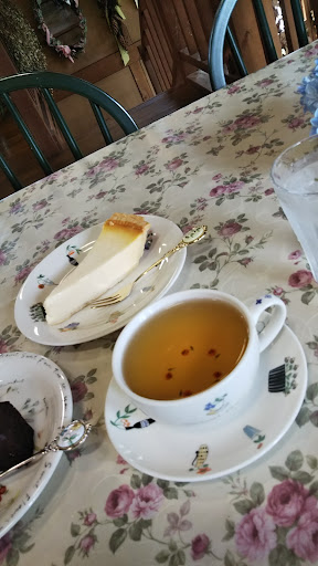 テーブルには 初めて見るあじさいが飾ってあり、綺麗でした。 ハーブティーの中から ミントブレンド パウンドケーキから チョコアーモンド 足りないかなと思い チーズケーキも注文しました。 想像していたより パウンドケーキもチーズケーキも普通のお店より 2倍位の大きなカットだったので 驚きました! びっくりしていたら、食べきれない時は言って下さい。包みますのでと言ってくれました。 パウンドケーキは濃厚でしっとりし とても美味しかったです! チーズケーキと言うよりは レアチーズケーキで 生地は トロっとしていました! やはり、食べきれず パウンドケーキのひと切れは...
