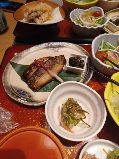 正直、ガッカリ 美味しい焼き魚が食べたかったので たまたま見つけた新聞のクーポンは使えないが ぜいたく御膳なら焼き魚が大きいとの事で注文 待つこと10分程。まあまあ混んでいるのに 提供時間は早い方で良かったのだか お膳の 中央にお刺身 マグロ、白身は鯛との事 白身は厚みがあり過ぎ? 焼き魚の切身の皮を剥いだかのような切身で スジがかたく噛みきれず苦戦、 マグロ赤身(中トロ?)も身が離れていて 生ぬるさも手伝いちょっと生臭い 生もの得意じゃないので大トロらしきは山葵醤油だくだくでいただいた でも噛みきれない鯛よりは断然美味しかった