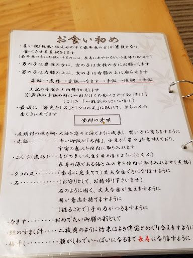 Read moreお食い初めで利用しました 座敷の個室で料理も美味しく満足です バウンサーを持って行くのを忘れて赤ちゃんを抱っこゆらゆらしながら食べました 星をひとつ減らしたのは 後3つ目サービスが行き届いていたら嬉しいなどお思い星をひとつ減らしました