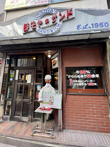 )やはりこの間は、お腹が空き過ぎていたようです(笑) カラシ入りと無しをテープで見分けられるように配慮していただき、とても助かりました。子どもも間違えずに取り出すことが出来ました。テイクアウトでも店内の味をいただくことが出来て、嬉しかったです。また是非利用させていただきたいと思いま... Read moreThe first hamburger shop in Japan. The small unassuming Hosoya Sandwhich has sold over a million hamburgers since opening after the war! The current owner is the son of the founder. Basic plain hamburgers to more gourmet options. Best burger in the city? Maybe not, but you are also coming here for the history.
