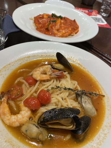 This place is good considering that it is in the middle of no where. Service is good and attentive. We enjoyed the pizza, squid ink and sea urchin pasta. The kid's meal comes in the Anpanman plate, it is good value and has a good range of small servings...