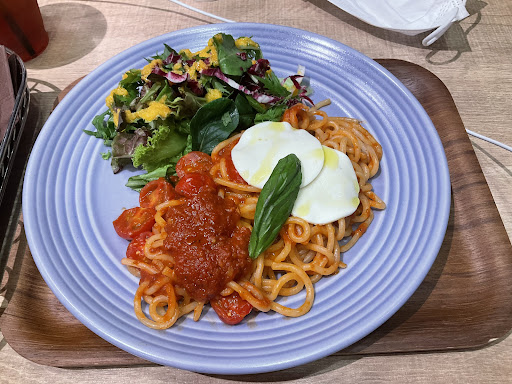 Tried this cafe style restaurant for dinner. Indulged in the mozzarella and fresh tomato pasta set with a salad and drink. My partner opted for the shrimp and broccoli tomato cream pasta set. The price point was a little high, but the volume of food was spot on. The salads had an excellent mix of greens with a tangy and flavorful dressing. The pasta was thicker in diameter to traditional spaghetti, and could have been bucatini, but I’m not sure. The thick noodles were a perfect answer for the richness of the mozzarella and tomato sauce combination as well as the shrimp, broccoli, and tomato cream. All together, I loved the texture of each bite, the combination of the sauces and noodles being spot on. Being a cafe, there were many spots for charging electronic devices along the walls, and although quite busy, it was reasonably effortless to move between tables, and the wait time was very short as the turnover tends to be quick being in the mall attached to Sendai Station. I’d definitely recommend this restaurant to anyone...