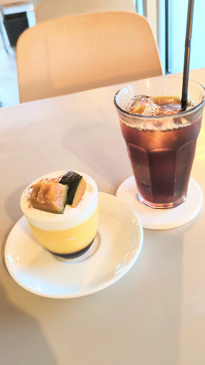 まずプリンは固めのもので、手作り感の美味しさがたまりませんでした。生クリームもたっっっぷりのっていましたが全く重くなく、エスプレッソ入りかつ甘さがかなり控えめなものだったのでプリンと本当によくあいました。カラメルもたっぷりかかっていて、苦めで、お皿をなめたくなるくらい美味しかったです。 次にカプチーノについて、泡の部分がふわふわたっぷりで酸味が弱く、最後まで泡が消えずにいてくれました。プリンともよくあって、またいただきたいです! 全部美味しかったので、ケークオランジェをお持ち帰りしました。