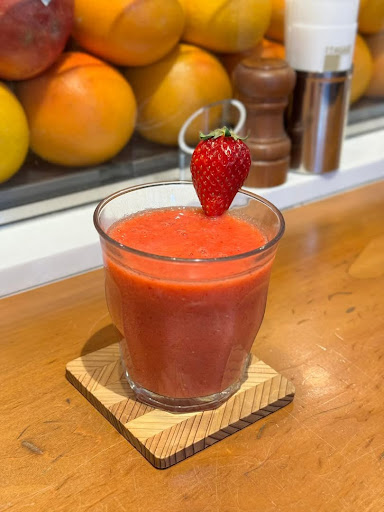 Relaxed cafe featuring health-conscious light bites, parfaits & juices, plus a fruit store.