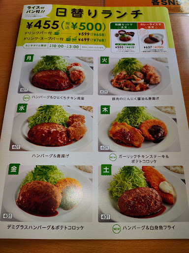 Read more2025.4.X 夜中にお茶しに来たのに、定食食べちゃいました。空いてて良かったです。 ーーーー 2024.8.X ふらっとコーヒー飲みに来ました。混んできたので撤収 ーーーー 2024.6.X ロコモコ!美味しゅうございました。 ーーーー 2024.4.X とうとうQRオーダー始まってました。呼出も併用出来て良いですね。 ーーーー 2024.1.X 久々のモーニング 大盛りポテトも喰らいました。 ーーーー ドリンクガブガブ飲みに寄っちゃいました。ランチも過ぎた時間でしたので、ゆっくりできました。さっぱりとサラダがすすみます ーーーー かき氷始まりました。昨年はウチのボクちゃん、食べきれなかったけど今年はどうかな!本日もランチメニューでお得に頂きました。 ーーーー 久々に朝訪問、ウチのボクちゃんがエッグスラット食べながらサイコロステーキ食って満足してました! 今日は珍しく朝空いてました。本日も美味しく頂きました。ありがとうございます。 ーーーー 日曜、寝坊しました!10時迄のモーニング間に合わなかったので、24hのモーニングを頼んでみました。駐車場はこみあってましたが席は若干の空席ありで選べたのでドリンクバー近くに座らせていただきました。11時頃になると続々と皆様来店、オンタイムは平日・休日問わず忙しい店舗なので皆様お気をつけて ーーーー 23.1014 メニューが新しくなって種類も増えました。 ーーーー 2023.12.X ...