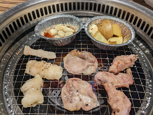 Make a reservation beforehand and arrive hungry. All-you-can-eat grilled meat and vegetables delivered via robot! Order small dishes from the menu and cook the raw meat on the grill at the table which is lit by an employee. Many non-meat options available as well. Salad, soups, dessert, and side dishes can also be delivered to the table. Be careful not to order too much; you will be charged extra for excessive...