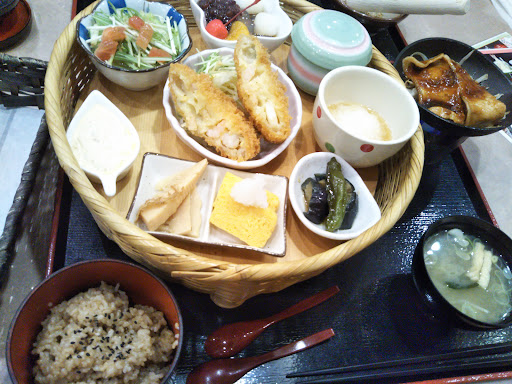 和食ファミリーレストランですね、キッズメニューが充実しています。 ビックなパァフェがあります。 でも、それだけではなく懐石メニューやお膳のメニューが充実してます。うかがった日は、平日の開店11時に入店し、にぎわい篭懐石と、海老・ヒレカツ御膳を注文しました。 篭懐石の玄米ご飯が、もっちりした食感に炊きあがって香ばしい香りもあり、たいへん肝心しました。 御膳のほうは、ご飯とキャベツがおかわり自由だそうです。ご飯がなくなった頃にスタッフの方から声がけがありました。 大体の食事メニューの料金は、1000円位から1900円位で1300円位が主体じゃないかと思います。 価格以上の気遣いもあり、大満足でした。 子どもだけではなく、年配...