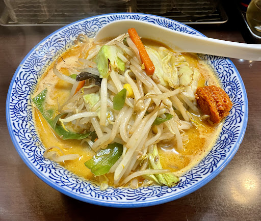(メニューには「野菜なしの辛味噌ラーメン」があるので、これが山形の辛味噌ラーメンと同等のもので、そこに野菜を乗せたのがこのお店の特徴なのでしょう。)