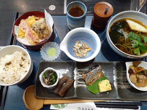 昼食に一家3人で利用。 メニューは茶そば系と和食メインで、盛り付けもお値段も良心的。 似たようなものをファミレスで食べるなら、こちらで食べた方が断然よいと思います。 お冷やではなく水出しの冷たい緑茶が出、こちらはお代わりOKでした。とても美味しかったです。 食事のスペースには2階もありますが、こちらは貸切用で、ただ50人くらいしか入れないので、ちょっと狭いかも。 食後のデザートに父が抹茶ソフトクリームを食べたがったのですがメニューにはパフェしかなく、代案として680円の甘味三昧(名称違ってたらすみませんm(_...