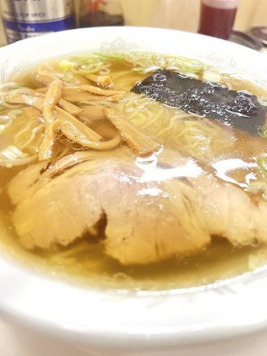 店に入ると大将の第一声が「今日は半チャンラーメンのご飯が一口分しか無くなって出来ねんだ。」 自分「あっ、大丈夫ですよ。塩ラーメンは大丈夫ですか?大盛りで!(ライス好きオーラを出してたのかな?😂)」 数分後……👴「はい、チャーハン。」 自分「えっ??」 👴「たんねべ(笑) サービスだ」 ありがとうございます♥️今日 丸よし大正解だ🎵 それからすぐにラーメン着丼🍜💨 壁に貼ってあるメニュー全部を見ても「特製」が着いてるメニューは本日いただいた「味よし特製塩味ラーメン」のみ! うん!流石は特製!旨いな😋 昔懐かしい正油味のラーメンはよくあるけど、昔懐かしの塩味ラーメンを提供する店って今は意外と珍しいかもネ 👀♪ チャーハンもパラパラ系でこれも旨~い😋⤴️