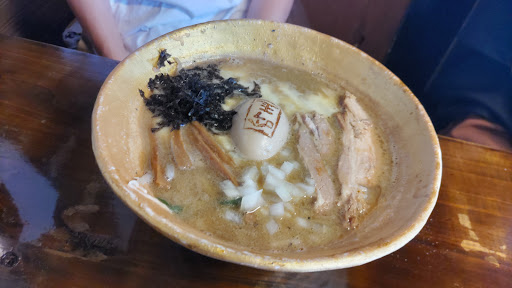 Read more自販機食券販売なのに色々種類とかトッピングとか選ぶのが多くて時間がかかる。その上家族で行くと自販機の前に人が溜まってしまい、イライラしてしまいました。食券買った人を、さっさと席に案内して欲しいですが、席が分からないので全員購入するまでに待つ事になり、改善して欲しいです。自販機はPayPayなど使えますが、現金は1000円札のみ。ホントに家族で行くには不便です。最初の段階でつまづきました。 麺は席に着いてから選びます。 細麺は5分するかしないかで配膳され、早いです。細麺は凄く細い中華麺を想像していたら、そんな事はない普通の縮れ麺。他の麺よりは細いって事かな。細麺を食べた者は塩っぱいと言ってました。縮れ麺はスープが絡みやすいので、塩っぱく感じるのかも知れません。 やや丼ぶりも小さめに思いました。 私はオマールエビ味噌ラーメンだったので平打麺をお勧めされ、そちらを頼みましたが、 私には食べにくかったです。縮れ麺をチュルチュル食べたかったです。 最初にエビの香りがしましたが、味では分かりませんでした。スープはつけ麺の様なちょっとドロドロタイプ。割スープもらえるのを知らなかったので、そのまま食べました 太麺を頼んだ者は配膳が一番遅く、最初に配膳された人はもう食べ終わりそうでした。 太麺と味噌ラーメンの相性があまり良くなかったのか、食が進まないようで、他の者に食べてもらいました。 口の中も塩っぱいので、車に置いて着たお茶を飲みたくて、家族より先に席を立ち、店を出ましたが、一緒に出ると思われて、元気に「ありがとうございました」 と何度も言われてしまい、まだ食べている家族が席に残っているのに食器を片付けに来た店員さんもテーブル横で待っているし、居心地悪いだろうなと思いました。 麺の茹で上がり時間に時差があるので、細麺食べた人が太麺食べ終わるまで待つのも辛いので、同じ種類の麺を注文すれ...