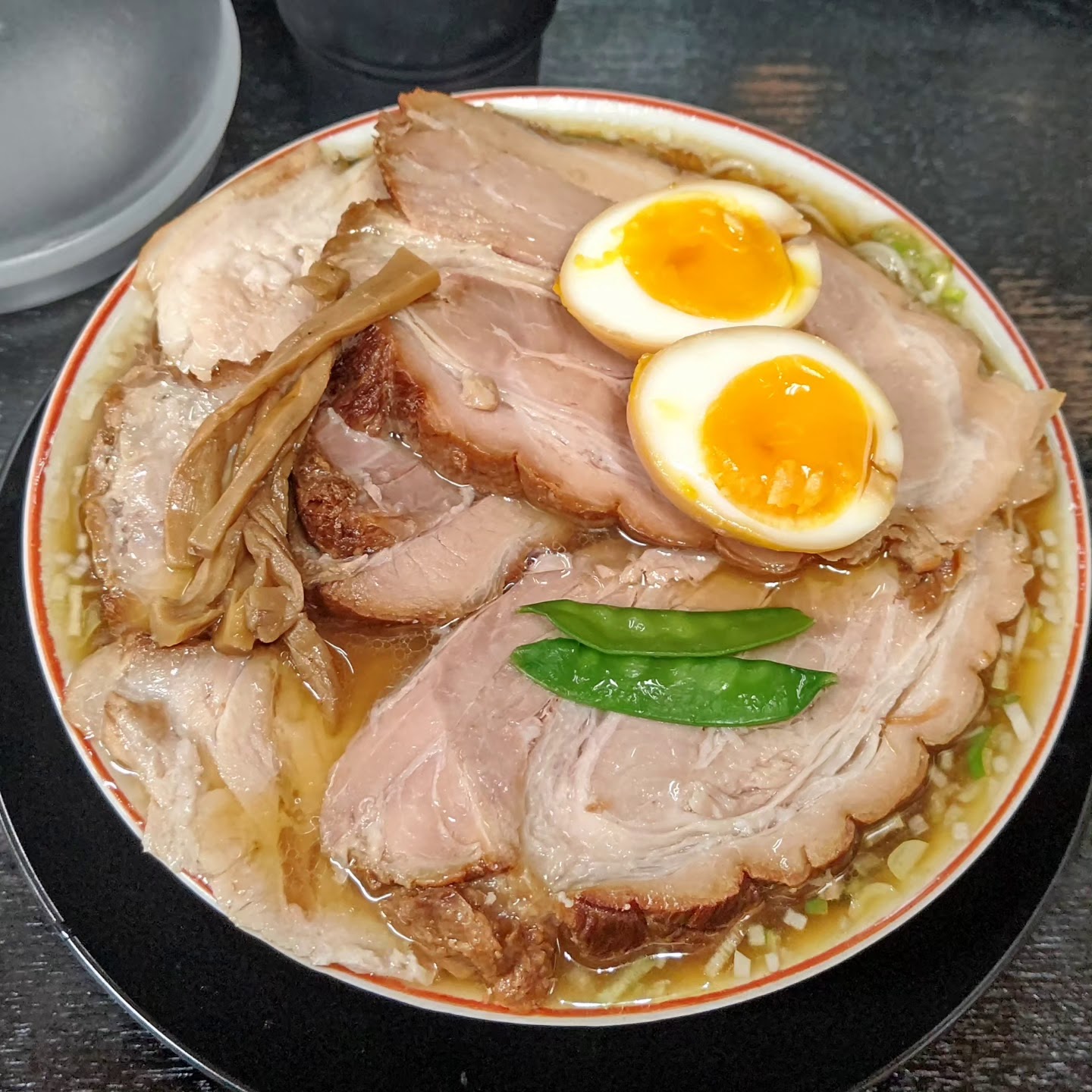🅿️空き有りでのピットイン 連日大盛況のお店ですが、土日通し営業の15:00~18:00頃は狙い目の時間帯ですね。 私自身 過去に📺️で紹介された直後のお昼時には1時間半並んだ事もありました…( ̄▽ ̄;) いつも思うのですが昔ながらと今時の両方良い所の両方を兼ね備えた一杯🍜 よくある濃くて美味しい🍜屋さんとは違い、いつ食べても旨い🍜だと思います。 でも今回はいつもの「煮卵入り柔らかバラ肉チャーシュー」のバラ肉が売り切れていたのが残念!!