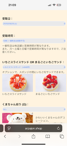 家に帰って、娘の誕生会がはじまりケーキをだすと上に乗っているいちごの先が茶色くなっており、若干腐っていました。 よくみると腐りかけのいちごや、傷んだイチゴが2〜3カット乗っていました。 また六等分して分けたのですが、オプションで頼んだスライスのいちごが見当たらず、 ?、と思ってみてみると、ほんとに小さい1〜1.5cmくらいのいちごのはじの部分が1〜2mmくらいでカットされたものが各ピースにたった0〜2こしか入っていませんでした。 648円でオプションをつけたのにそれはないのでは? しかもいちごを食べると舌がピリッと痺れました、とてもびっくりしました。 以前にも何度かケーキを注文していますが、腐ったいちごも、接客が残念だったのも、今回が初めてです。 八乙女店はもう2度と利用しません。ケーキの質もとても悪いです。全くおすすめできません。いちごの飾りがかわいいので子供が喜ぶのでアルパジョンで注文しましたが、今後誕生日ケーキは別の店に頼みます。 せっかくの誕生日を台無しにしてくださり、勉強になりました...