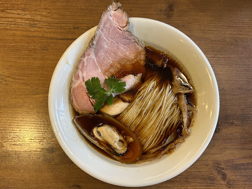 具材はかなりゴージャスな感じですよね 大判豚肩ロースチャーシュー(1枚) 炙り鶏チャーシュー(1枚) ムール貝、穂先メンマ、三つ葉 etc......