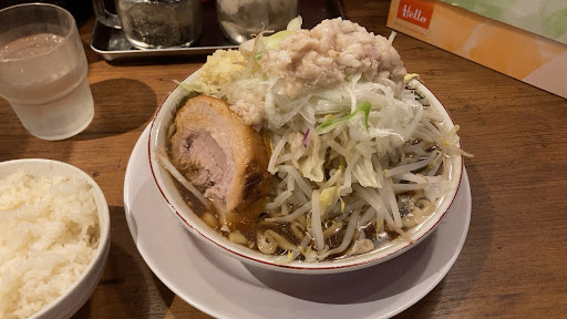 あと初見に優しくないです。券売機で買って、券を渡して、にんにく入れますか?と聞かれて「はい」と答えるとライスどうしますか?で終わり。席に座ると色々なトッピングメニューの案内が… 券売機見ると券売機には書いてない! おいおい、まず券売機のとこに置いておいてくれよ笑笑 席に座った後にそんな無料トッピング見せられても後から頼みづらいだろ笑笑 2回目以降来たリピーターや常連さんは気にしないんだろけどねぇ。