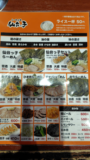 Read more10年ぶり位に来店や その前はかなりの頻度で通う仙台っ子だったが 一品堂の方を利用してた 久しぶりなので当たり前に料金が記憶と明らかに違うがまあ仕方無い 見た目的にノーマルラーメンが890円と 二郎系のビリーや中々の900円に比べるとショボい しかしメニューを良く見るとご飯無料だ… しかも泉店は無限ライスが可能だと…(調べたら店舗によるが直営店は無限ライス) 僕はラーメンライス大好きなのでこれは有難い(リアルに10杯は余裕でイケるのだ2キロは食える)しかし太るので5杯程度で止めるけどね あと昔は仙台っ子は店舗ごと味が違うと噂されてたが俺はそんな訳無いと思ってたがホームページ見ると店舗ごと若干スープの濃度が違うらしい 俺は5年前までラーメン通を気取ってたが やはりラーメン通を辞めて良かったと思う 正直味が良く分からんのだ 泉店は二番目?に濃度が濃いそうだ だからなのか… 濃いのが好きな俺は仙台っ子と言えば泉店推しだった 味が良く分からん僕でも何となくそれを察してたんだろうね まあ何となく救われた気持ちになった ありがとうホームページ 最近家系がぞろぞろ仙台に進出して来たが あんまり好きじゃねえんだよな 宮城は仙台っ子で良いんよ と特盛をおかずにご飯を6杯おかわりして 満足 ランチセットも17時まで全日やっている これも店ごと違うらしいが 泉店はその辺大体有能な店みたいだね まあ餃子あんま食わんからその辺どうでも良いけども これからは月一通う事になるだろうな それにしてもここのスープはご飯に合うな...