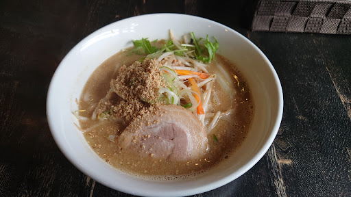 スープは豚骨ベースで 味噌が数種類でブレンドされているそうで 美味しかったです ただ胡麻がやたら入っていて 胡麻を食べてるのか、スープを飲んでいるのかわからないかな しっかり混ぜて飲む分には好きです