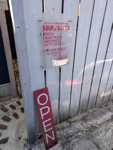狭い住宅地の中に入ります。 自転車も車とすれ違うのたいへんなくらい。 店前に五台駐車場あり。 勝手な店内のイメージは、個人経営のビックリ○ンキー。 黒板の日替わりメニュー。 パスタはスープパスタ。 トマト系、クリーム系、その他。 トマト系の芹とペスカトーレ(だったかな?) 注文。 オレンジジュースとコーヒーはドリンクバー注文(100円) スープバー。 サラダ、フオカッチャ、ラタトゥイユみたいなやつ。 パスタは量が多いよ! 大盛じゃないのに食べても食べても減らない。 イメージのトマト系では無いが、ウマ♪ ニンニク苦手な方は先に言うべきね。 けっこう入ってます。 食後のデザートはベリーのパンナコッタみたいな。 コーヒーは濃いめ。 とにかく店内が楽しくて話題がつきないね...