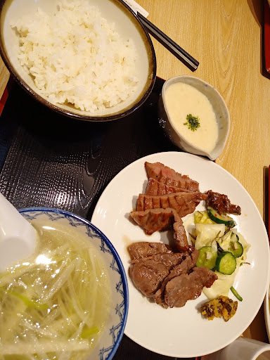 Read more少し遅めのランチ(14:00)に牛タン焼と牛サガリ焼定食を頂きました。値段は1550円くらいだったと思います。 店内はそれほど混んではいませんでしたが、注文から提供まで20分かかりました。 仙台を訪れた際には1食は利休で牛タンを食べるほど牛タン好きです。 やっぱり厚切りで柔らかい利休の牛タンは美味しかったです😋 サガリは少し硬めの肉で牛タンの食感と食べ応えにはかなわなくそれほど印象に残りませんでした。 とろろも別で頼んでご飯にかけてたべましたが、これも麦飯に合って良かったです✨ 付け合せのキャベツと唐辛子が塩分濃い目のためご飯のオカズには困りませんが個人的にはもう少し減塩がいいですね。