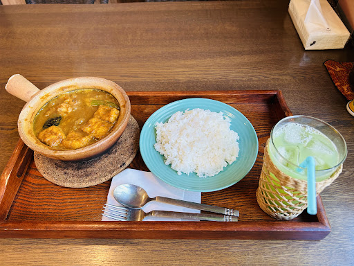 Read moreずっと気になってたSAMASAMA亭さん 食べたいメニューが多く肉骨茶は絶対食べてみたい1つでしたがもう少し涼しくなってからにしようと悩んでいるとフィッシュカレーをお奨めして頂き、確かにグリーンカレーやカオマンガイ的な料理はタイ料理屋で食べれる。って事で注文。 土鍋でグツグツ状態で運ばれてきました! 程よい辛さとスパイスで中には白身魚、油麩?ズッキーニ、インゲン等具沢山。。 グァバジュースも一緒に美味しく頂きました😋 店内の雰囲気も私の大好きなバリ風で落ち着きます。他にお客さんも居なかったのでご主人からマレーシアの色んなお話聞けました♪ 肉骨茶、ホッケンミー、他にも色々気になるので再訪確定です。 ご馳走様でした!!
