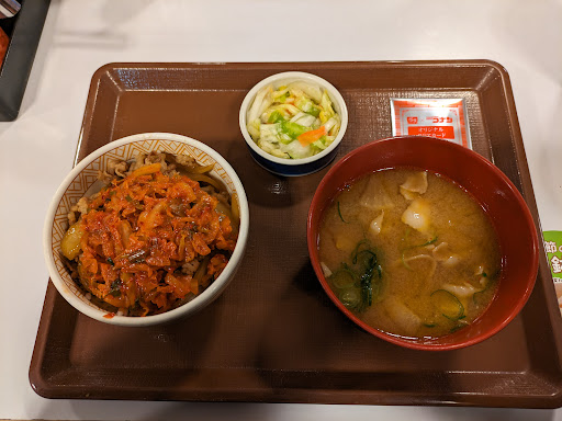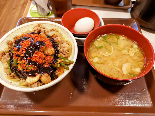 すき家は席のタブレットで注文できるので嬉しいですね。他の牛丼屋さん(松屋だと食券機前に並んで購入、吉野家は店員さんに直接オーダー。)だと、後ろのお客さんを待たせてしまう事を気にしてしまうので有難い。牛丼のたまねぎを無料でねぎだくに出来るのも嬉しい。