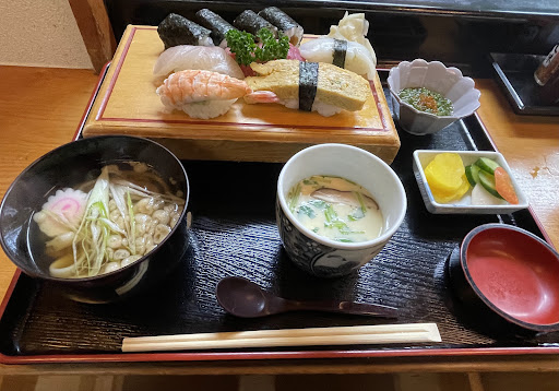 秋保に行く途中で立ち寄りました。 以前もランチで訪問したことがあり、美味しかった記憶があったので再訪です。ちょうど12時くらいで一番乗りでしたが、すぐに座敷は満席になりました。 人気が出てきたのかな? 税込2,000円の太白にぎりを注文。 お寿司のほかに、サラダとお蕎麦と小鉢とお新香が付いてきます。 全部新鮮でした。 特にトロがトロットロですぐなくなってしまいました。 最後のデザートにちょっとしたフルーツも。 そういえば、前回来た時も出てきたな! いつか特...