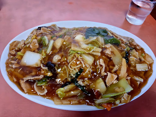 Read moreオープン10分前には駐車場が埋まります。店内はカウンター、テーブル席が二つに小上がりで長テーブルが3つ。奥に座ると出入りしづらい。自分たちで座布団敷きます。人気と噂の五目焼きそばをオーダー。5分でやってきました。甘めの餡であまり今まで出会ったことがない味でした。若干途中で飽きが来ますが、胡椒などで味変。麺も柔らかめで切れるのか短め。でも、しっかり麺に焦げ目もついてて餡との相性がいい。最後は癖になってしまっています。味のクオリティが高いわけではありませんが、地元の町の中華屋さんって感じで、通いたくなる味です。定食もご飯やおかずの盛りもよくてコスパ良し👍オープンと同時に入りましたが続々とお客さんが入ってきます。ただ、駐車場が5台しか停めれなく、店前で樹木があり何とも停めづらい。しかも常に満車。車ででしかいけないので駐車場...