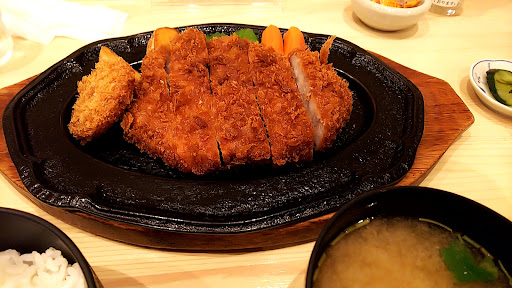 Came here for lunch at 12 on a Thursday and was able to get a seat easily. Inside they have around 14 seats and two tables on tatami mats. Ordered the specialty pork set which is 2350 yen for either fillet or loin which includes salad, large or small rice 300gram piece of tonkatsu, miso soup and coffee and dessert. Left absolutely full. Service was super friendly and has a nice atmosphere. They have parking space for around 3 cars. Card...