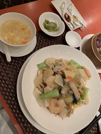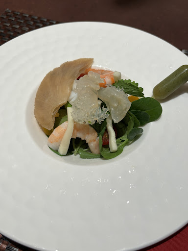 Shanghai–Sichuan fusion food in a formal, old-fashioned hotel restaurant with geometric screens.