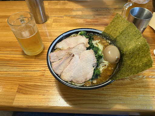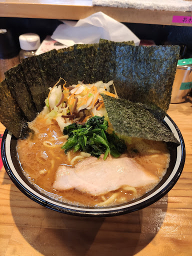 久々の訪問。味は正真正銘、正統派家系で文句無し。トッピングも多数あるのが嬉しいですね。ただ他の方が指摘しているように提供までの時間は非常に遅いです。おそらく5人分の注文が入った時点で麺を茹で始めると思うのですが、タイミングによってはかなり待たされます。しかしながら、この辺も本家の作り方なんですかね?ドバっと大量の麺を入れて固さや量を見極めながら平ざるで上げる。まあ、尤も現在は直系では無いとかその辺の詳しい事情は分かりませんが、YOUTUBEなんかで本家の動画を見るとそのような光景を目にしますので、より家系っぽさを感じます。また、スタッフさん同士の微妙なギクシャク感も多少ありましたが、お客さんに対しては丁寧ですし、こちらも動画サイトで見る修行映像に比べれば手も足も出ていないですし(笑)、ちょっとした良い緊張感を生んで...