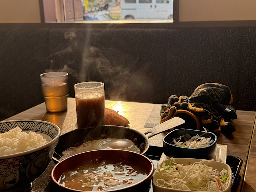 再度来店♪ 今日また久々に寄りCMで見て、すき焼き御膳の熱々をランチに頂きました 前に食べた鉄板焼肉セットはショッパかったけど、こちらは丁度良い味加減で美味しく頂きました 特にビックリしたのが御飯がツヤツヤで美味しく思わず店員さんに何処の米を使ってるのですか?と聞いた程に美味しかった 新潟産のブレンド新米だそうです 毎年登米産のひとめぼれを取り寄せて買ってますが今年の熱夏で登米産のひとめぼれは水分が足らなかったからか?例年に比べパサパサしてて粘りもなく美味しくないです 新米なので例年の様に水を少なくして炊いたからかも知れませんが昨年の米程は美味しくなくガッカリしました 今度は水を普通にして炊いてみます 余談に成りましたが吉野家さんで美味しい御飯が頂けるとは思ってなく感激...